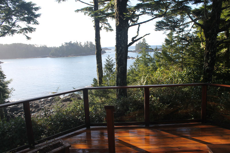 This is definitely the room for romance, with a king size bed and down duvet. A two-sided fireplace faces both the bedroom and bathroom where a huge inviting two-person jetted tub rests in the glow of the fire, also has a separate shower. A massive two-tiered private deck is nestled into the old growth forest yet provides a spectacular ocean view. Wall-mounted 32" flat-screen TV/DVD and free wi-fi. An authentic west-coast table is set in a bay window where you can sit wrapped in your cozy robe and sip your morning coffee.